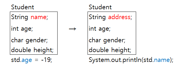 다른 곳에서 클래스의 필드에 접근하기 위해 '.' (참조연산자)를 활용한다.