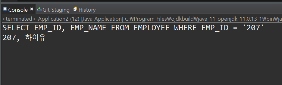 System.out.println(rset.getString("EMP_ID") + ", " + rset.getString("EMP_NAME"));