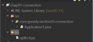 이 상태에서 실행시키면 ClassNotFoundExcception이 뜬다. ojdbc8을 복사해서 해당 프로젝트에 복사해준다.