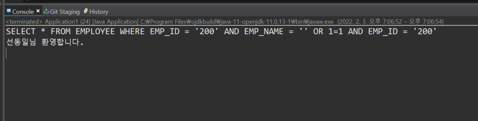 private static String empName = "' OR 1=1 AND EMP_ID = '200";