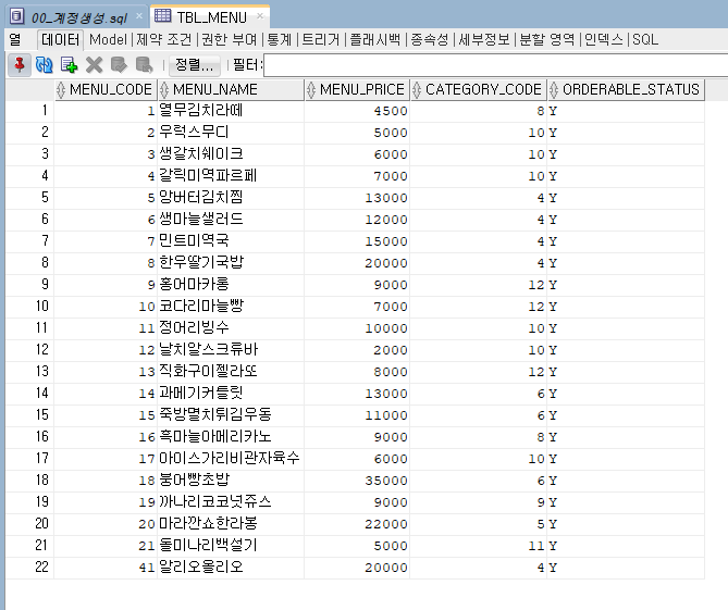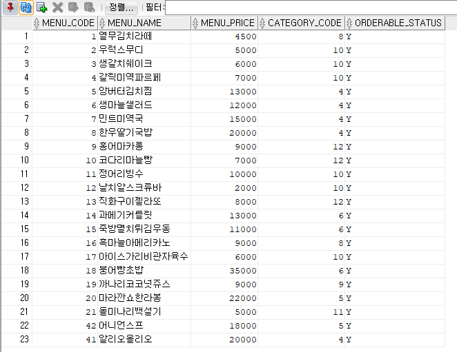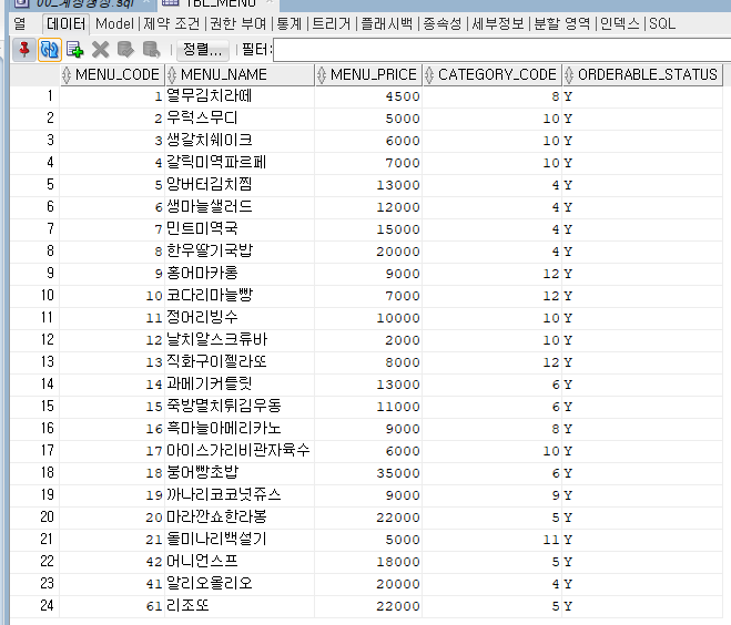 menuDTO 클래스(필드값, 기본생성자, 매개변수 생성자, getter/setter, toString) 클래스를 만들어준다. 코드 생략