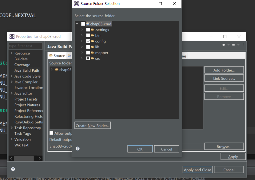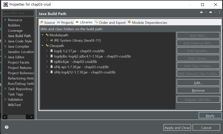 eclipse로 돌아와서 기존 cnofig, lib 폴더 복사한 새로운 프로젝트 생성 후 oracle에서 새롭게 생성한 계정을 connection-info에서 수정해준다.