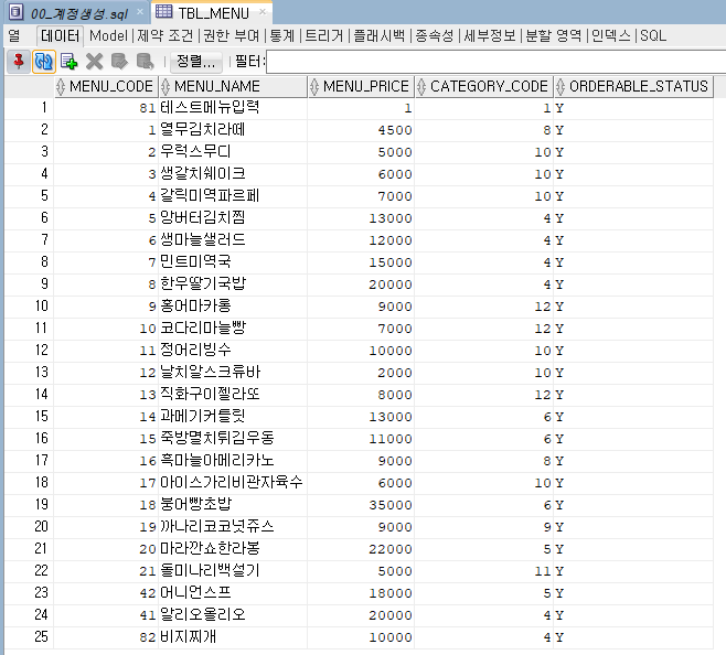 menu-query에서 마지막 메뉴코드 조회, 모든 카테고리 조회, 메뉴insert를 수행해주기 때문에 세가지의 키를 만들어준다.
