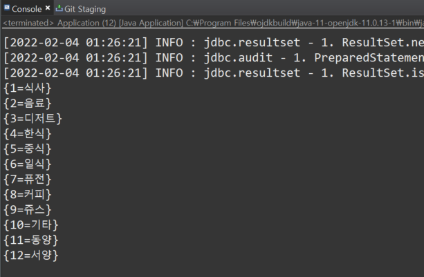 List<Map<Integer,String>> categoryList = menuDAO.selectAllCategory(con);