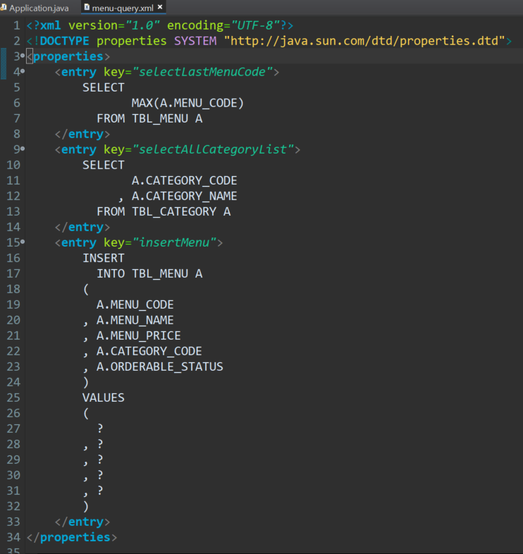 menu-query에서 마지막 메뉴코드 조회, 모든 카테고리 조회, 메뉴insert를 수행해주기 때문에 세가지의 키를 만들어준다.