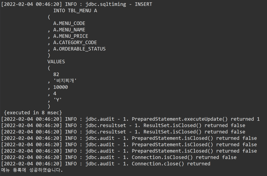 System.out.println("신규 메뉴 등록에 성공하였습니다.");