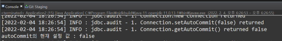 이후 실행해주면 AutoCommit 기본설정 false로 된 것 확인됨