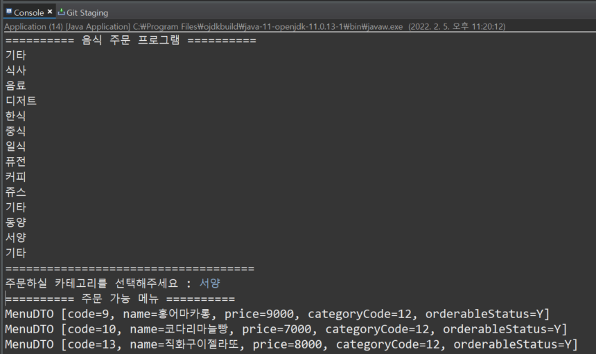 List<MenuDTO> menuList = orderService.selectMenuByCategory(categoryCode);