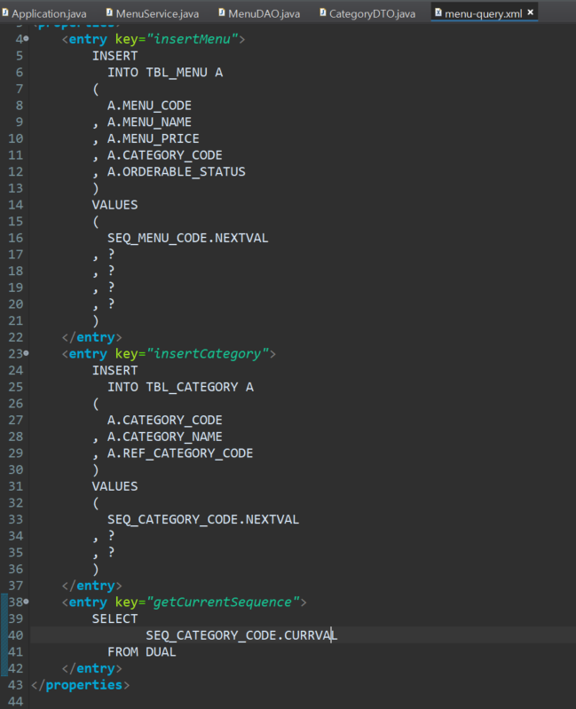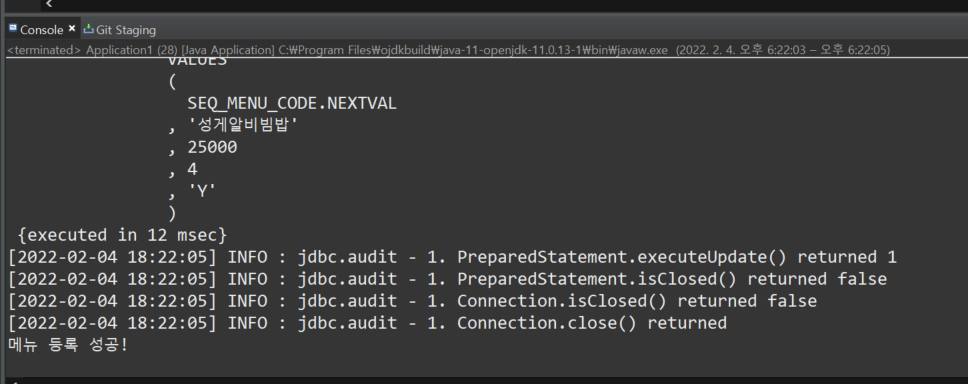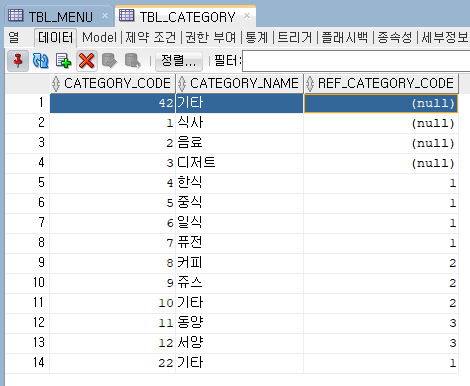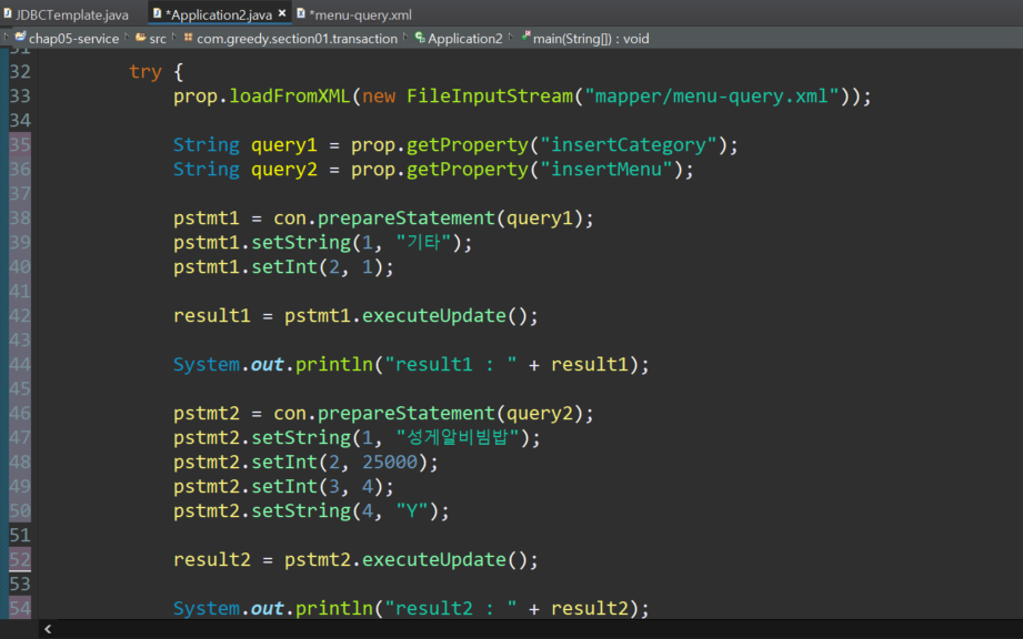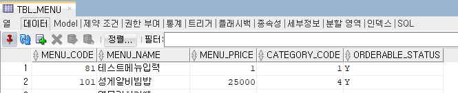 pstmt1에는 insertCategory, pstmt2에는 위에서 작성한 insertMenu를 실행한다.