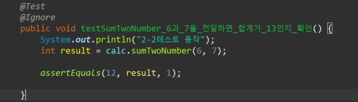 마지막 메소드를 보면 6과 7을 전달하면 합계가 13인지 확인하는 메소드이다.