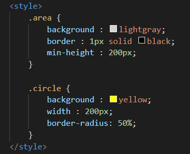 전체 클래스명이 circle로 변경되어 area클래스로 가지고 있던 속성도 제거됨(높이 값이 없어 보이지 않음)