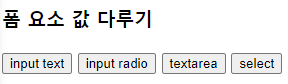- input, textarea : input.value 또는 input.checked (checkbox 또는 radio)
