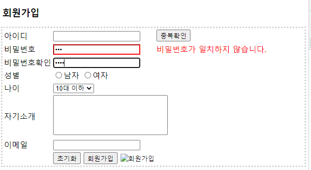 pwdresult.innerHTML = '비밀번호가 일치하지 않습니다.';