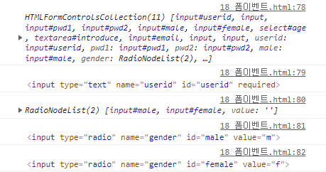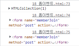 - form.elements : 해당 form 내의 name 속성이 일치하는 element 들을 반환