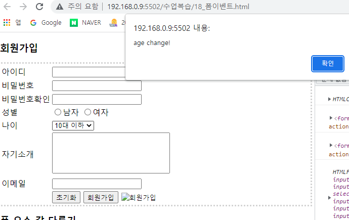 나이도 설정을 바꾸면 alert구문이 실행된다