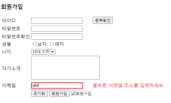 emailresult.innerHTML = '올바른 이메일 주소를 입력하세요';