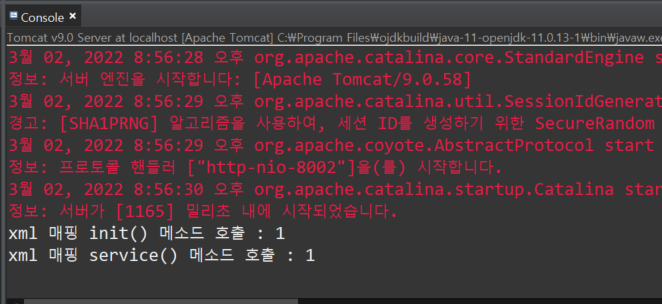 System.out.println("xml 매핑 service() 메소드 호출 : " + serviceCount++);