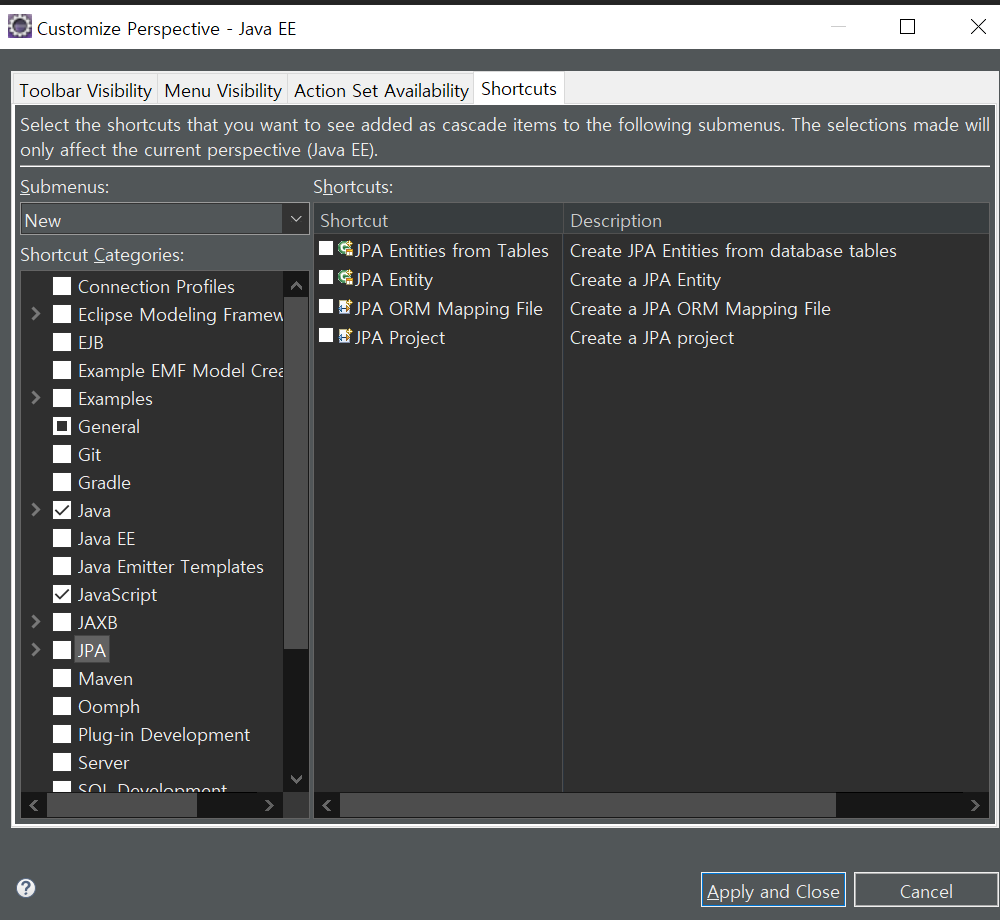 기존에 자바를 해올땐 Java로 바꿔줬지만 기본 설정된 Java EE로 그대로 사용한다.