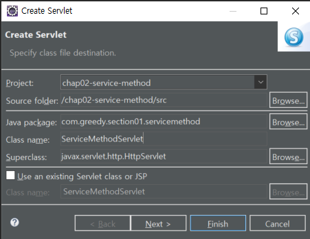 이전엔 class를 만들어서 작성해주었는데, 이제부터는 servlet을 만들어서 동작시킨다.