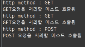 위의 서비스 메소드 요청하기, get방식 요청 전송, post방시 요청 전송을 클릭하면 아래와 같은 콘솔창이 뜬다.