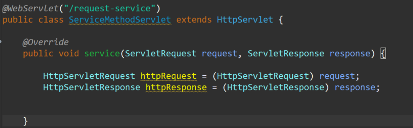//서블릿 컨테이너에 의해 호출되며 최초 요청시에는 init()이후에 동작하고, 두 번째 요청부터는 바로 service()를 호출