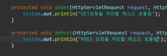 GET, POST 요청을 처리할 메소드로 요청과 응답 정보를 전달한다.