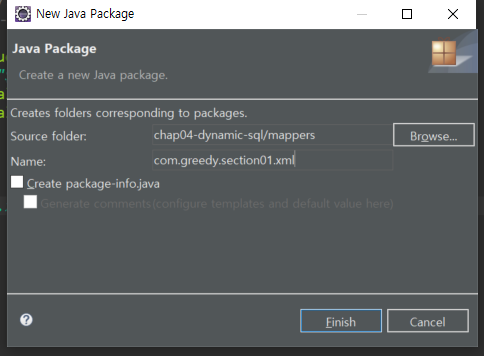기존 매퍼를 연결 할 때에는 mapper resource="~~"라고 작성해줬는데, 이번엔 패키지로 지정해준다.