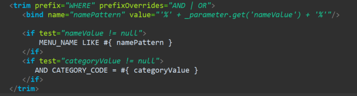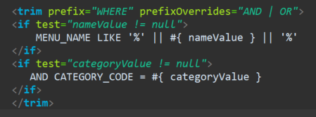 <!-- <trim prefix="WHERE" prefixOverrides="AND | OR">