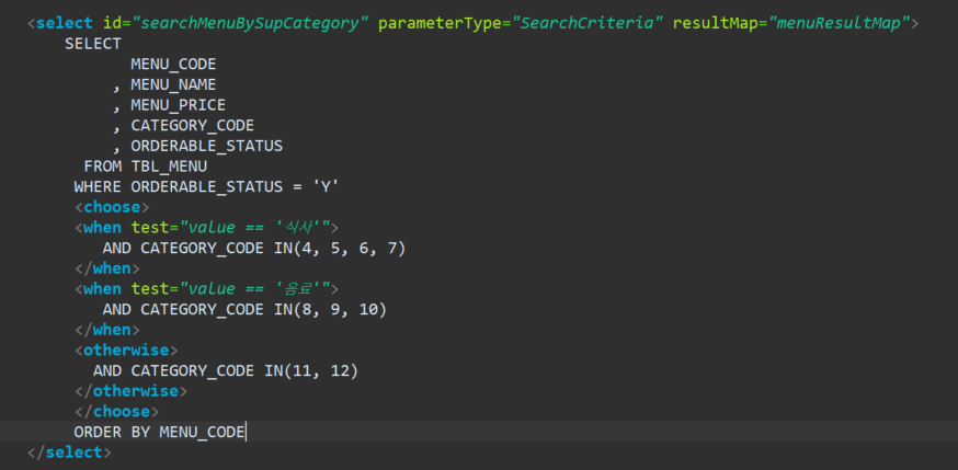 <select id="searchMenu" parameterType="SearchCriteria" resultMap="menuResultMap">