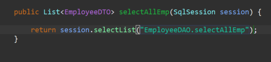 dao클래스에 메소드 생성. 전체 조회용이니 넘어가는 파라미터 값이 없다.