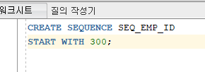EMP_ID가 300번부터 시작할 수 있도록 옵션도 넣어준다.