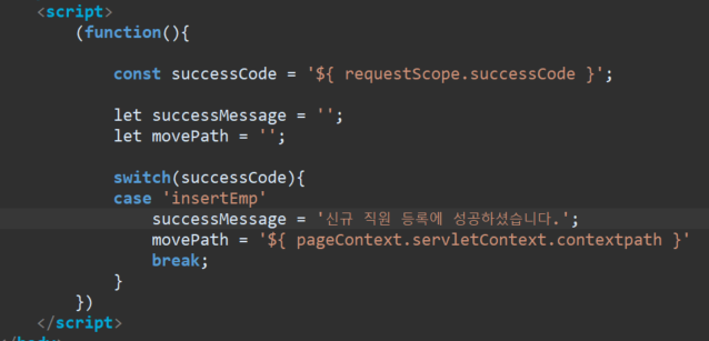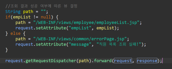 request.setAttribute("message", "신규 직원 등록에 실패하셨습니다.");