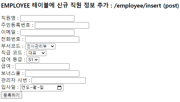 <h3>EMPLOYEE 테이블에 신규 직원 정보 추가 : /employee/insert (post)</h3>