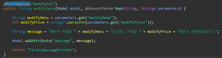 form의 name 속성 값과 매개변수의 이름이 다른 경우 @RequestParam("name")을 설정하면 된다.