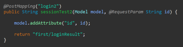 클래스 레벨에 @SessionAttributes 어노테이션 이용하여 세션에 값을 담을 key 값을 설정해두면 Model 영역에 해당 key로 값이 추가되는 경우 session에 자동으로 등록한다.