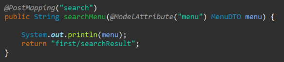 경우에 따라서 폼에서 입력한 값을 다음 화면으로 전달해야 하는 경우가 발생하는데 이 때 유용하게 사용할 수 있다. @ModelAttribute("모델에 담을 key값")을 지정할 수 있으며, 지정하지 않으면 타입의 앞 글자를 소문자로 네이밍한 규칙을 따른다.