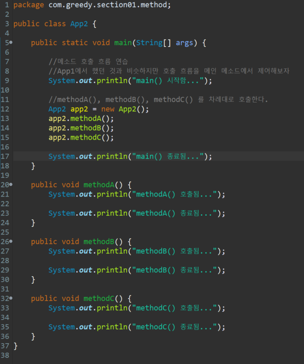 메인메소드(출력해야하는 클래스)로 와서 non-static과 static이 있는 메소드 둘다 호출해준다.