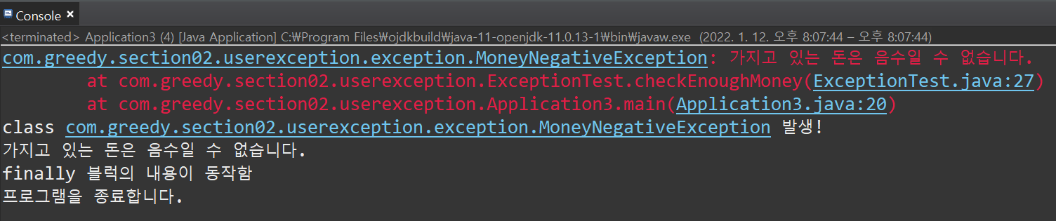 throw new MoneyNegativeException("가지고 있는 돈은 음수일 수 없습니다.");