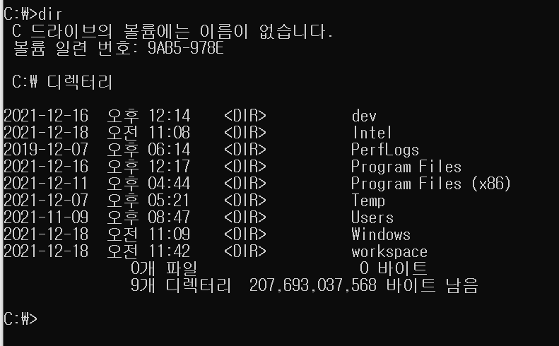 - 현재 C드라이브 안에 뭐가 있는지 보여주는 것