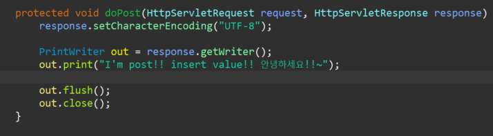 전달된 파라미터를 꺼낼 때는 request의 getParameter 메소드를 이용한다.